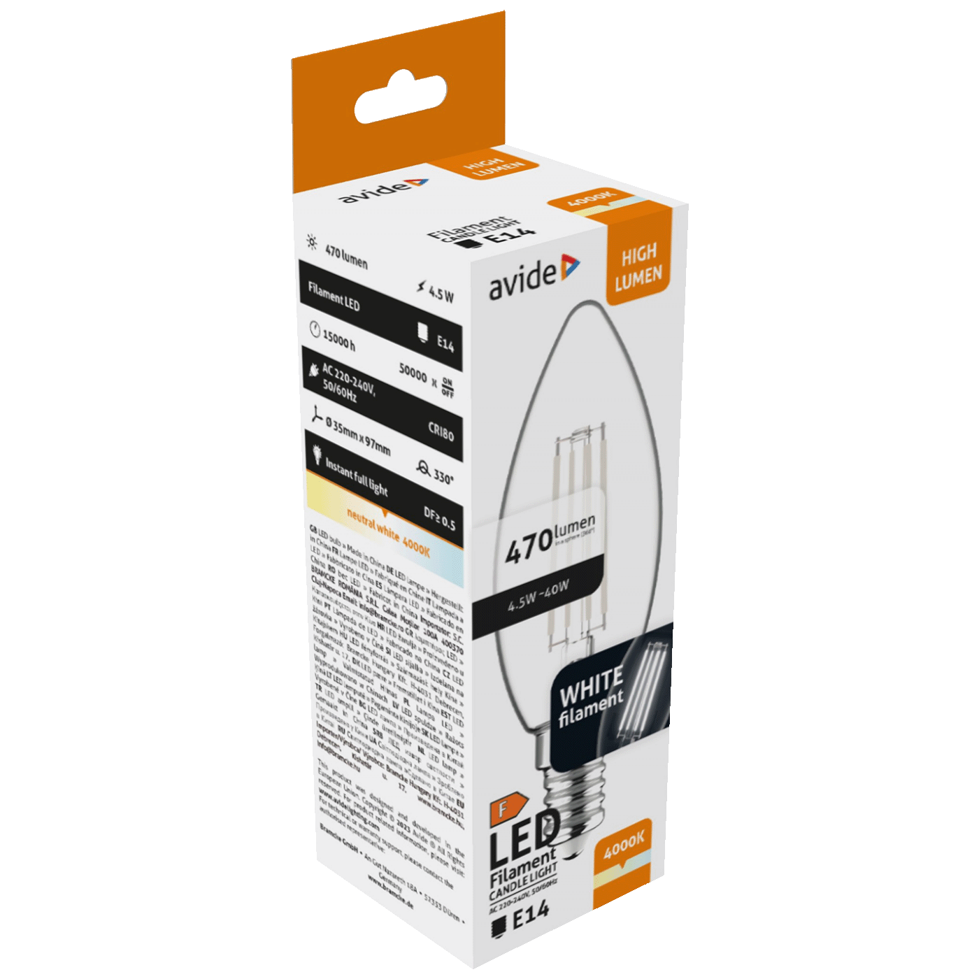 Avide LED White Filament Candle 4.5W E14 NW 4000K je visokokvalitetna LED žarulja koja je odličan izbor za rasvjetu doma ili kancelarije.